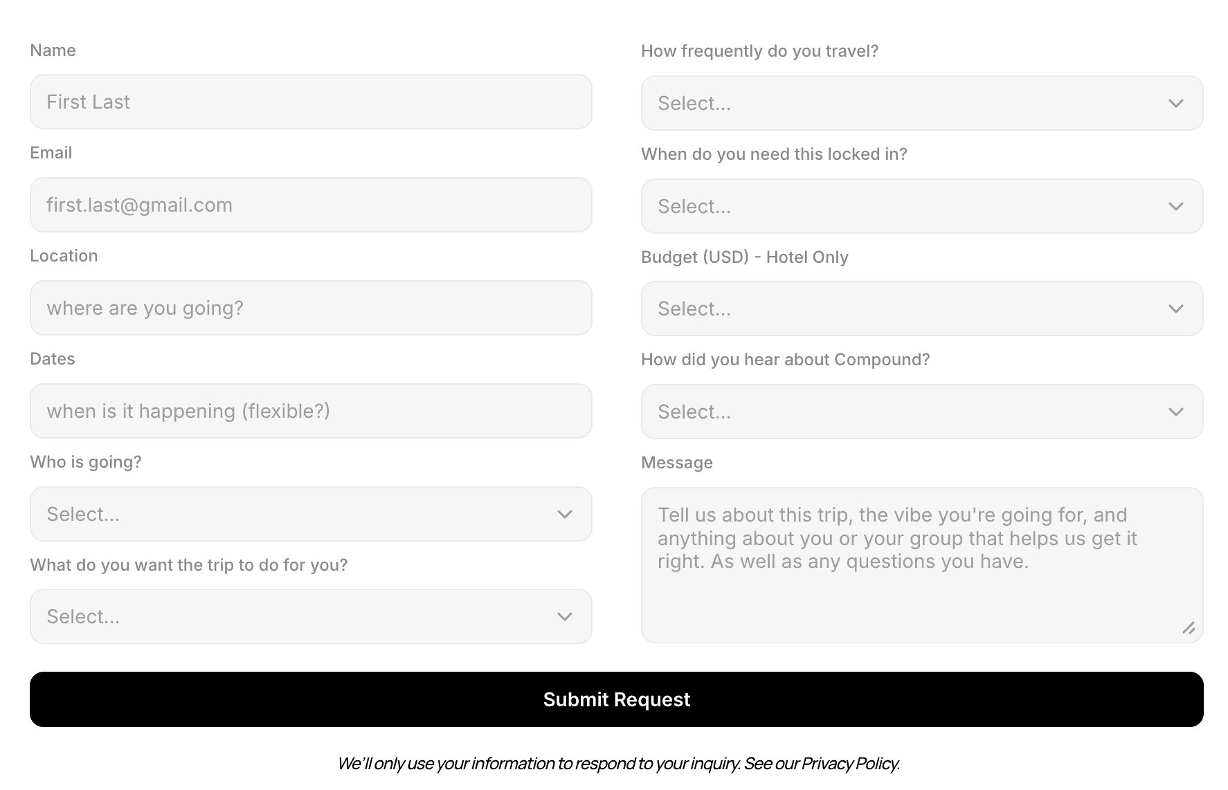 I built Compound because I couldn’t find someone I’d trust with my own trips. I had hired a top travel advisor and got something trendy, generic, and not worth the time.