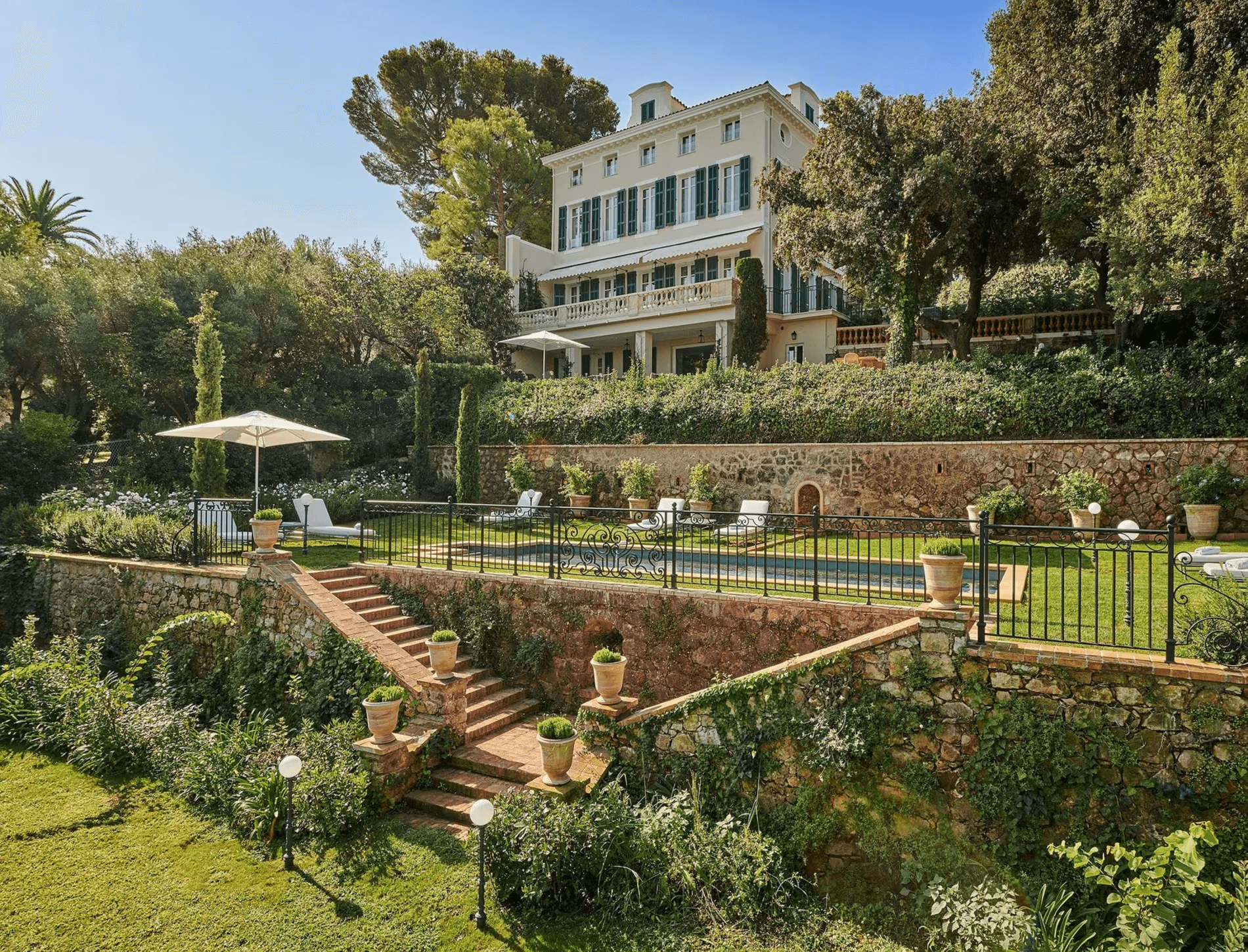 The pool is 110 years old and still the most photographed on the Riviera. Slim Aarons built half his career shooting it. You'll understand why the first time you see it.
