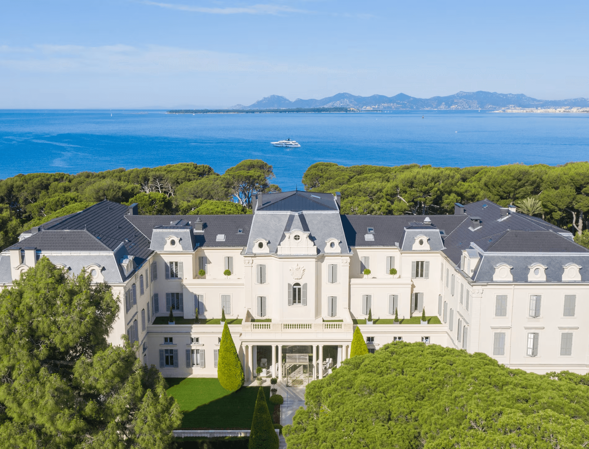 Hotel du Cap-Eden-Roc is the most storied hotel on the Mediterranean. Fitzgerald wrote about it, Chagall sketched in the cabanas, Elizabeth Taylor honeymooned here, and every May the entire Cannes Film Festival decamps to the grounds. But the reason it endures isn't nostalgia. It's the physical property: 22 acres on the tip of a rocky peninsula, with a heated saltwater pool blasted out of basalt in 1914, pine forests older than the hotel itself, and the kind of scale and privacy that simply doesn't exist on the Cote d'Azur anymore. The grounds are the product, and nothing built today could replicate them.