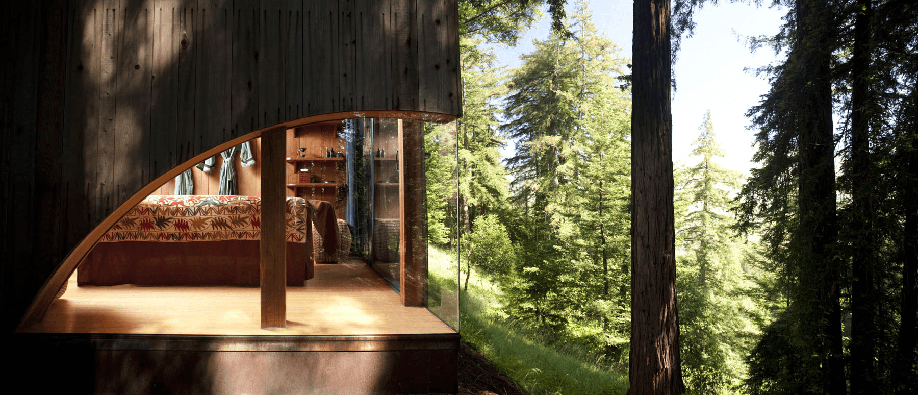 The room types here are genuinely different from each other, not just size upgrades. Pacific Suites (960 sqft, curved interiors, ocean views from every angle including the shower) are the best all-around pick. Cliff Houses are smaller but perched directly on the cliff edge with outdoor soaking tubs and the most dramatic ocean exposure. Tree Houses are the signature: triangular, elevated nine feet on stilts, skylights over the bed for stargazing. Charming but compact and not for everyone. Ocean Houses have sod roofs covered in wildflowers and strong ocean views. Mountain Houses are circular, face inland toward the Santa Lucia Range, and are the quietest. For a splurge, the Castro House or Post House are standalone one-bedroom suites on the southern cliffs with the most privacy and the best views on property.